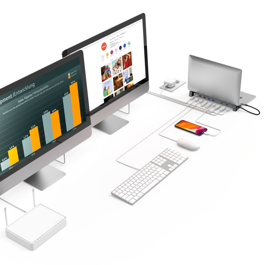 Hogy az előző gondolatmenetet rögtön folytassuk, a Hama kilencfunkciós dokkolója már korábban is rendelkezett egy érdekes extra funkcióval, mégpedig azzal, hogy a notebook hátsó része alatt is el tudod helyezni, hogy az eszközt megemelve jobb szellőzést és kényelmesebb gépelést biztosítson.