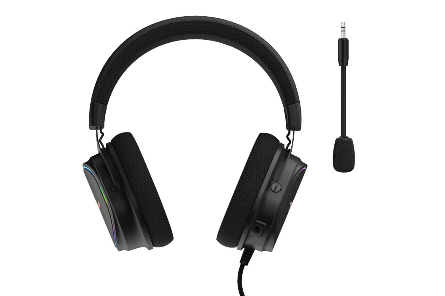 A fejhallgató felépítése minőségi: a 2 méter hússzú vezeték hálós borítást kapott, és a fülpárnák is hálós anyagból vannak. Utóbbi révén a füles a zárt hangzás előnyeit úgy tudja biztosítani, hogy közben a szellőzés kérdése is megoldott; ez a hosszú távú viselésnél nem elhanyagolható szempont. A mikrofont tartó kar is rugalmas, így a mikrofon pozíciója tág határok között állítható – amikor pedig egyáltalán nincs rá szükség, akkor le is tudod venni, hogy egyáltalán ne zavarjon.