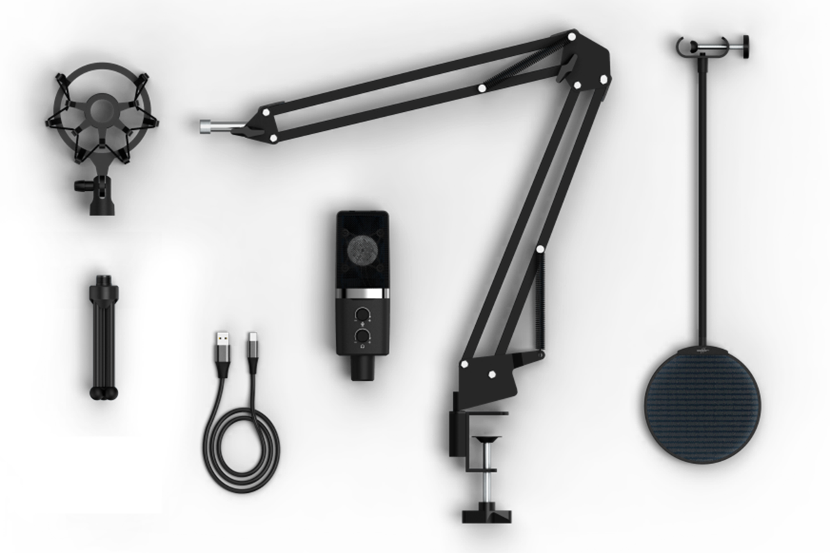 A uRage Streamer 900HD azonban nemcsak a hangminősége miatt kiváló választás, hanem azért is, mert a gyári csomagban rengeteg kiegészítő található. A mikrofon mellé jár például egy, az asztal lapjára felerősíthető rugós állvány, amivel tökéletes pozícióba tudod mozgatni. Felfogatása nemcsak közvetlenül csavarral, hanem gumiháló segítségével (mikrofonpók) is történhet, így az asztal rezgései sem tudnak eljutni a mikrofonhoz. Kapsz továbbá egy pop szűrőt is, amely csökkenti a felvételbe behallatszó légzéshangot, valamint az egyes kiejtett hangokat (p, b és t) kísérő puffogást is.