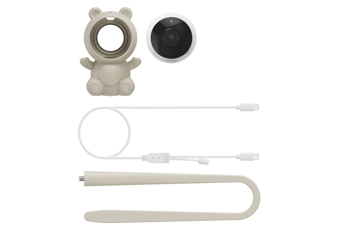A csomagban egy egyedi kiegészítő is helyet kapott, mégpedig egy rugalmas kar, amivel pillanatok alatt, csavarok és egyéb, a picit számára veszélyes alkatrész nélkül lehet a kamerát a rácsos ágyhoz a falon futó csőre vagy lényegében bármi máshoz erősíteni.
