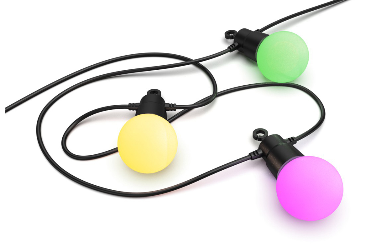 A második termék egy igazi kuriózum: egy fényfüzérről van szó, amely tökéletesen passzol az ünnepek hangulatához. Kültéren is elhelyezhető termék IP44-es víz- és porállósággal, azaz munkára foghatod akár az erkélyen vagy a teraszon is, ha szeretnéd. A füzérre 12 darab égő került, de több égősor is összekapcsolható egymással, ha egy kevés lenne. 30 előre programozott, akár dinamikusan változó jelenet közül választhatsz, vagy ha egyik sem felel meg az elvárásaidnak, akkor arra is van lehetőség, hogy az égők színét egyedileg válaszd ki: a WiFi kommunikáció és a Smart Home alkalmazás használatának lehetősége ugyanis ennél a terméknél is adott. Az égősor 8 méteres, az égők közötti távolság 50 cm, az utolsó égő és a konnektor között pedig 3 méternyi vezeték húzódik.